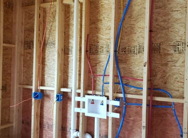 Complete interior solutions: Painting, Drywall, Tile, and Flooring. We handle critical systems Electrical, Plumbing, HVAC with high-quality Millwork and integrated smart home infrastructure.